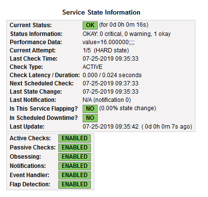 Verify that Nagios is successfully monitoring the status of the previously created service: