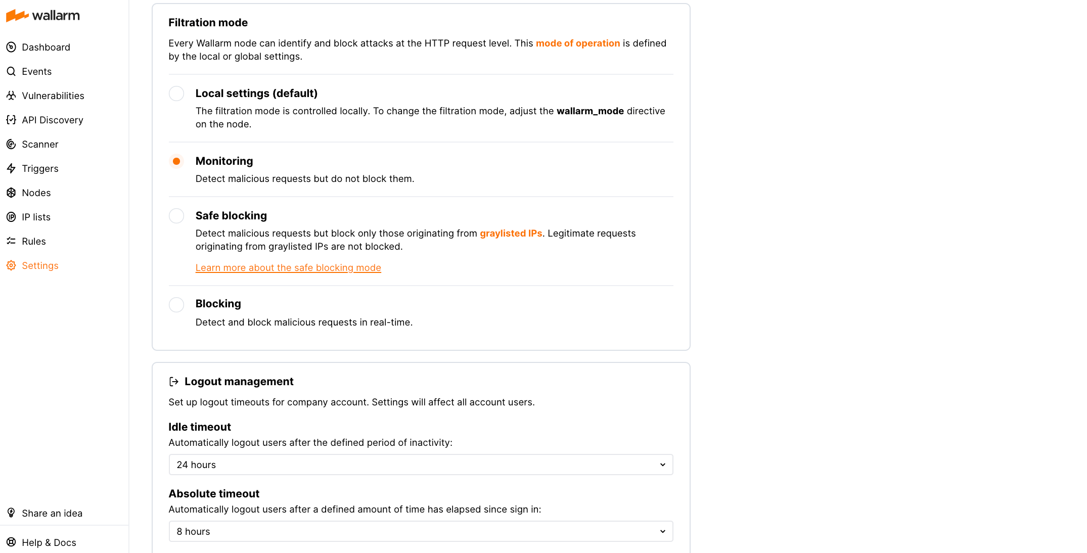 • Read Only with access to view main Wallarm settings.