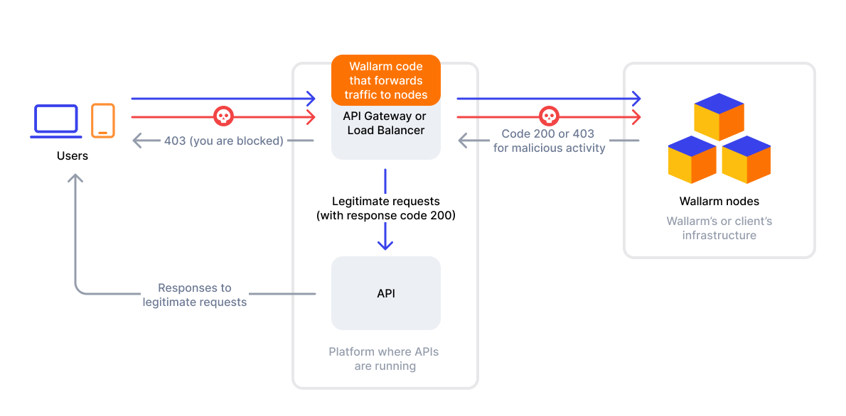 Wallarm's connector solution integrates with third-party platforms, such as API gateways or edge platforms, to filter and analyze traffic. The solution operates with two main components: