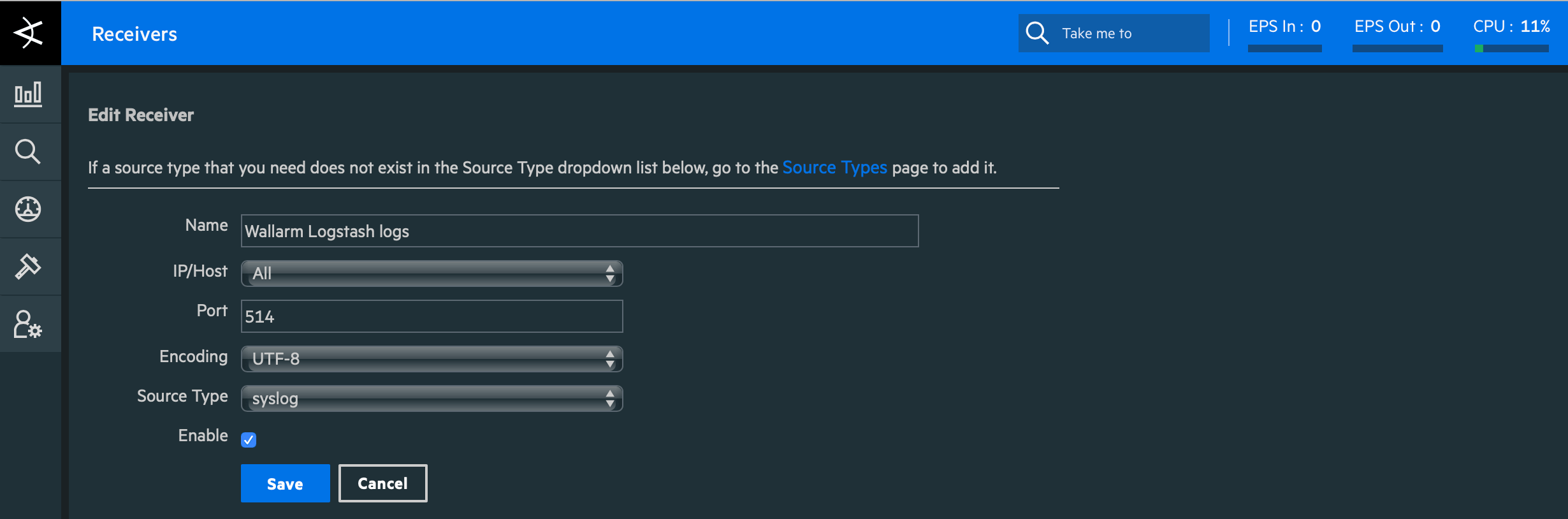 ArcSight Logger has logs receiver Wallarm Logstash logs configured as follows: